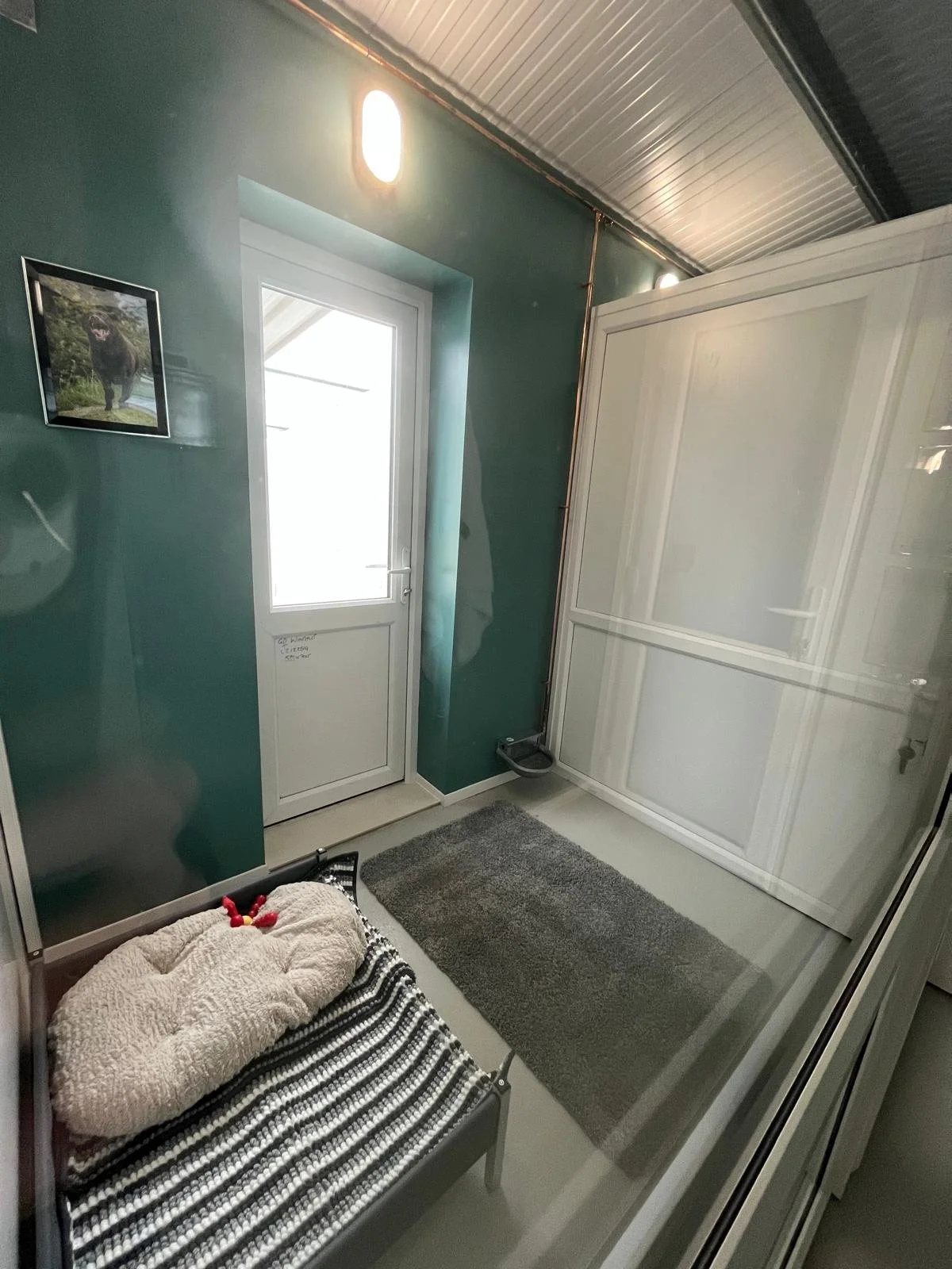 We have an outside shower, with warm water so dogs can be rinsed down and cleaned up before coming back indoors and we do also have a full washroom for more thorough clean ups.